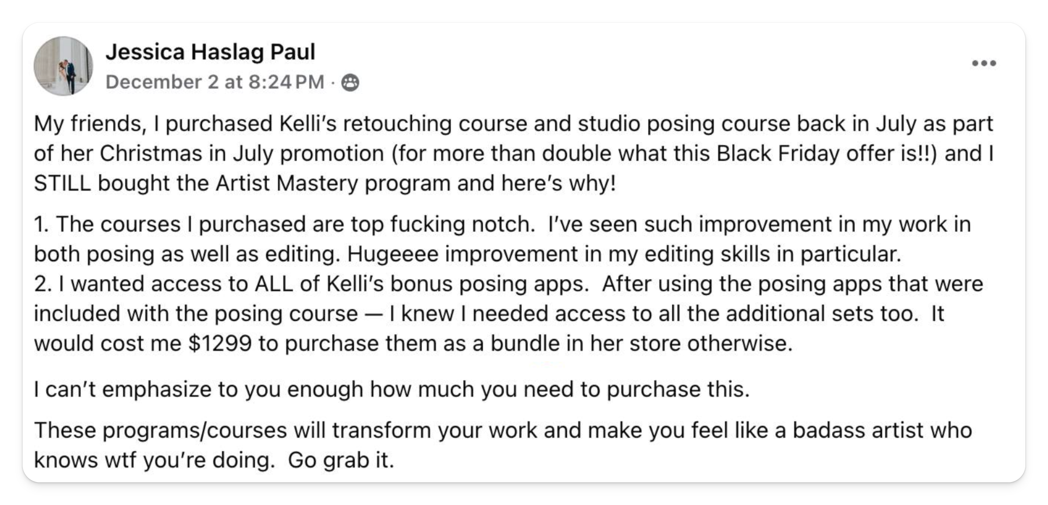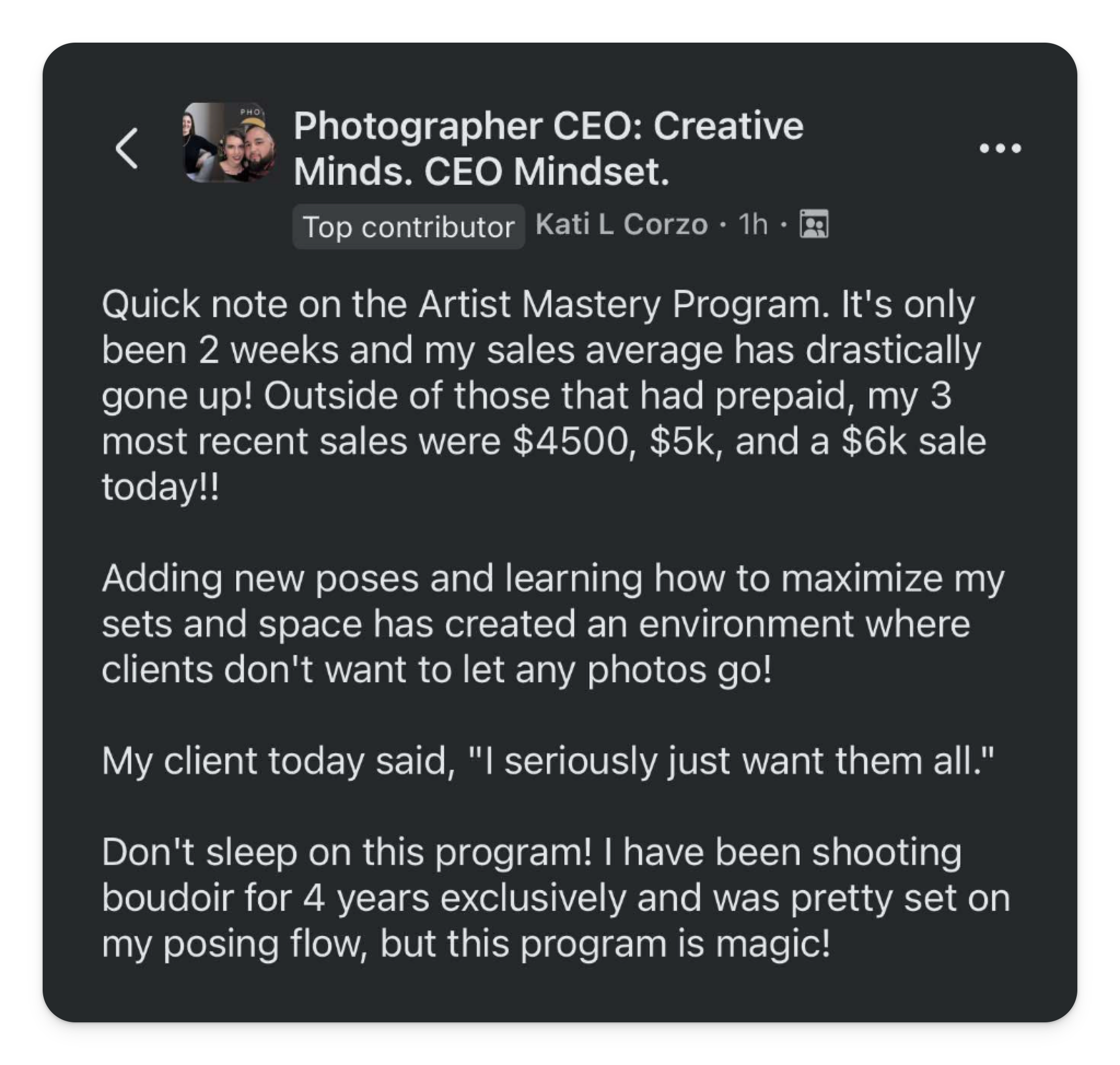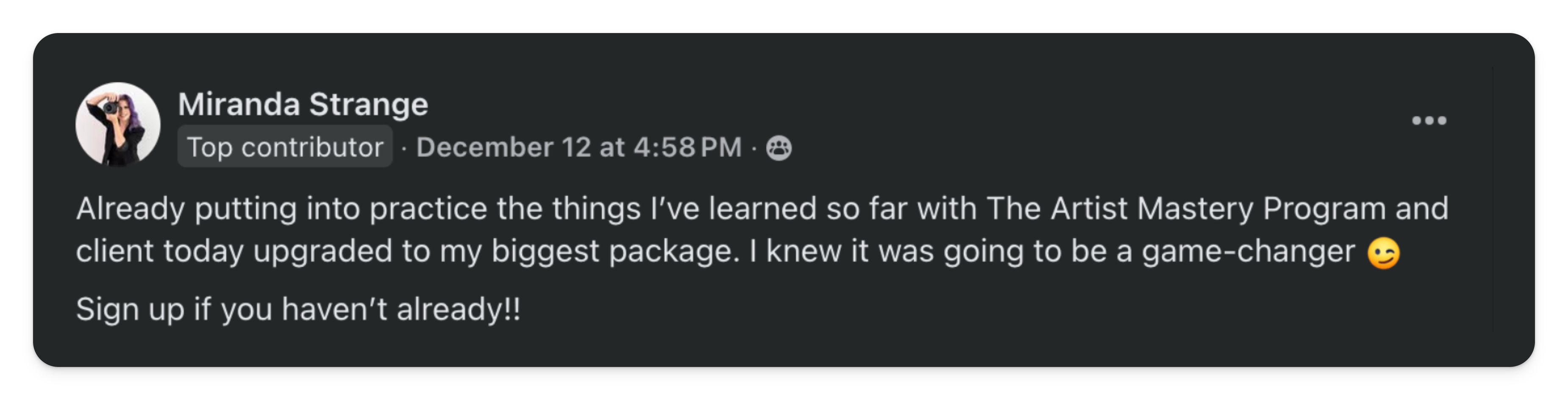 ⚠️ But fair warning: We're only accepting photographers who are serious about elevating their craft. If that's you, hit that buy button and let's transform your work!