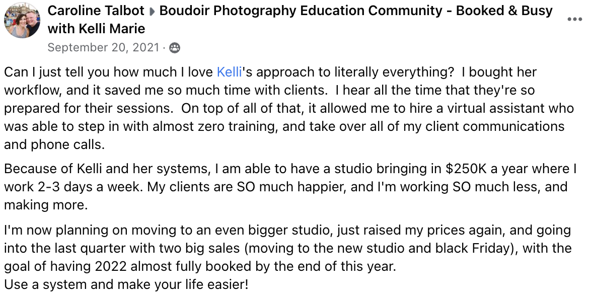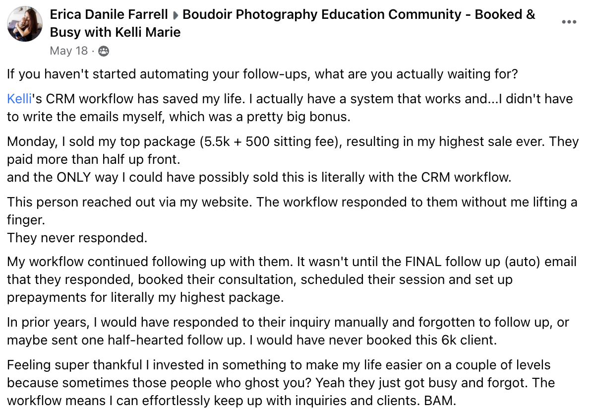 Now every step of my client process is automated and structured, from inquiry all the way to product delivery. And now yours can be too!