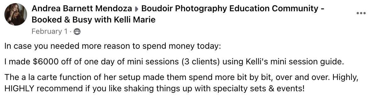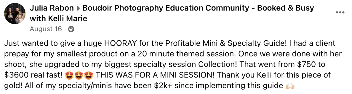 Your Mini and Specialty Sessions can be just as profitable as a regular session. Yup! You read that right, just because the session is shorter does NOT mean it can’t be just as profitable!
